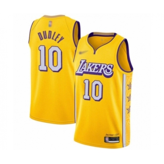>Men's Los Angeles Lakers #10 Jared Dudley Swingman Gold 2019-20 City Edition Basketball Jersey