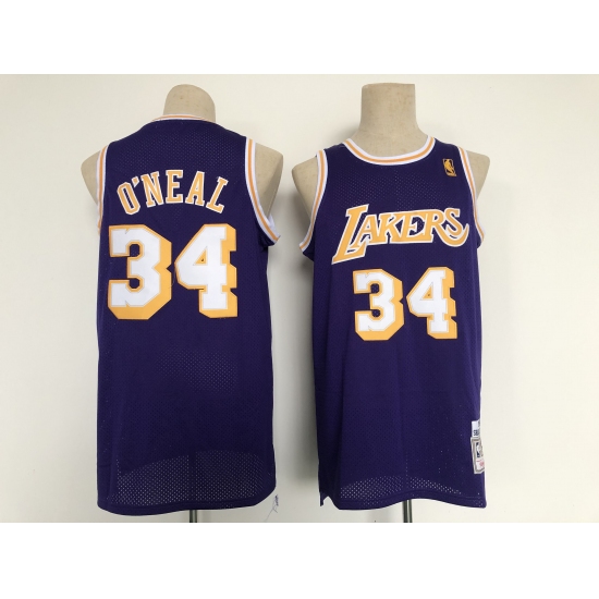 Men's Los Angeles Lakers #34 Shaquille O'Neal Purple Throwback Basketball Jersey