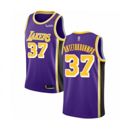 >Men's Los Angeles Lakers #37 Kostas Antetokounmpo Authentic Purple Basketball Jersey - Statement Edition