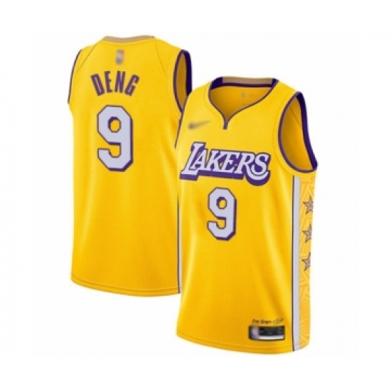 >Men's Los Angeles Lakers #9 Luol Deng Swingman Gold 2019-20 City Edition Basketball Jersey