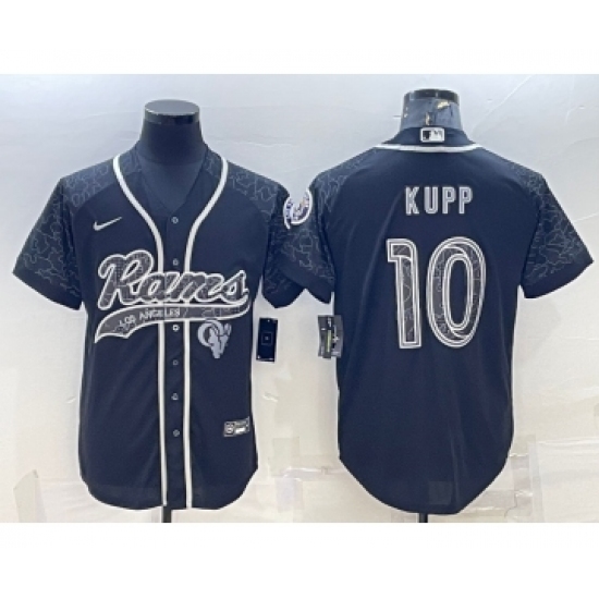 >Men's Los Angeles Rams #10 Cooper Kupp Black Reflective With Patch Cool Base Stitched Baseball Jersey