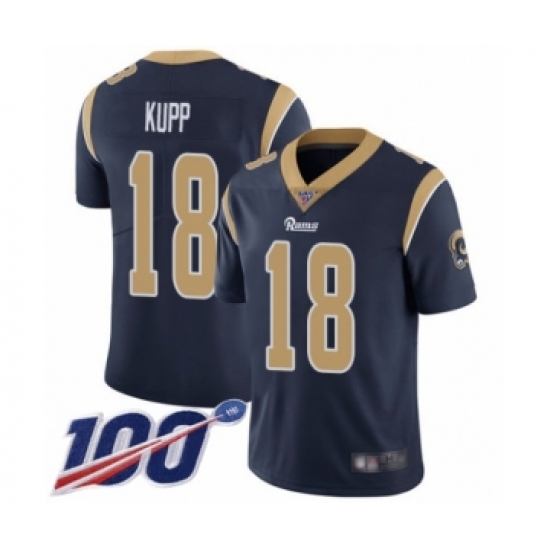 Men's Los Angeles Rams #18 Cooper Kupp Navy Blue Team Color Vapor Untouchable Limited Player 100th Season Football Jersey