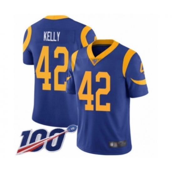 >Men's Los Angeles Rams #42 John Kelly Royal Blue Alternate Vapor Untouchable Limited Player 100th Season Football Jersey