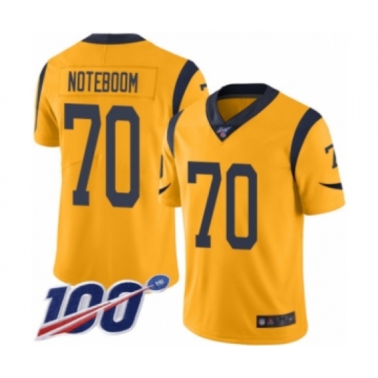 >Men's Los Angeles Rams #70 Joseph Noteboom Limited Gold Rush Vapor Untouchable 100th Season Football Jersey