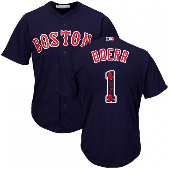 Men's Majestic Boston Red Sox #1 Bobby Doerr Authentic Navy Blue Team Logo Fashion Cool Base MLB Jersey