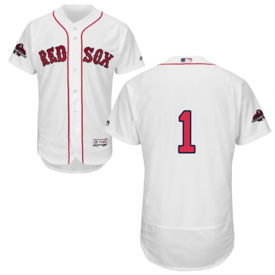 Men's Majestic Boston Red Sox #1 Bobby Doerr White Home Flex Base Authentic Collection 2018 World Series Champions MLB Jersey