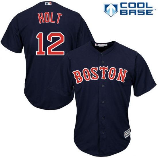 Men's Majestic Boston Red Sox #12 Brock Holt Replica Navy Blue Alternate Road Cool Base MLB Jersey