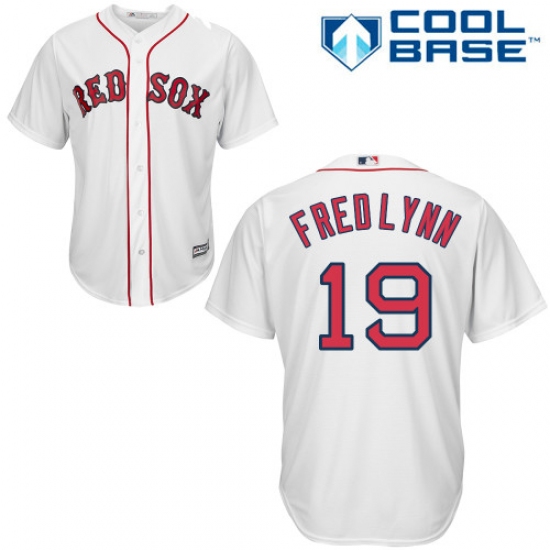Men's Majestic Boston Red Sox #19 Fred Lynn Replica White Home Cool Base MLB Jersey