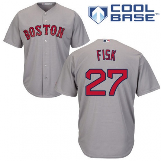 Men's Majestic Boston Red Sox #27 Carlton Fisk Replica Grey Road Cool Base MLB Jersey
