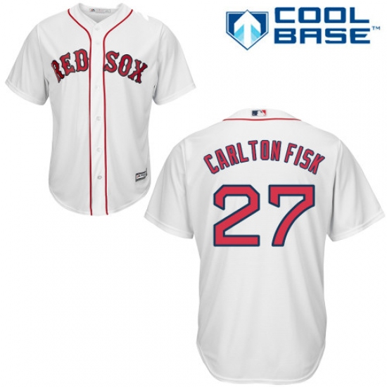 Home>MLB>Boston Red Sox>Carlton Fisk>Men's Majestic Boston Red Sox #27 Carlton Fisk Replica White Home Cool Base MLB Jersey