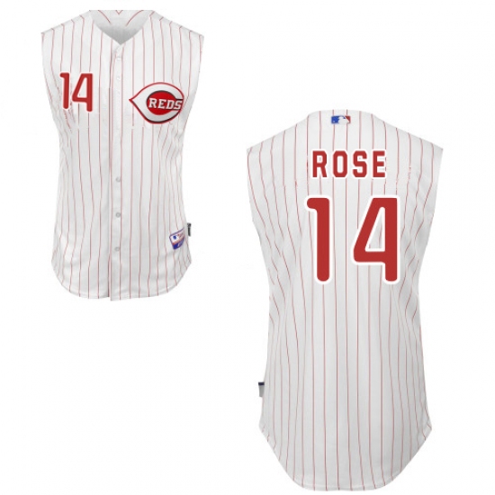 Men's Majestic Cincinnati Reds #14 Pete Rose Authentic White Vest Style MLB Jersey