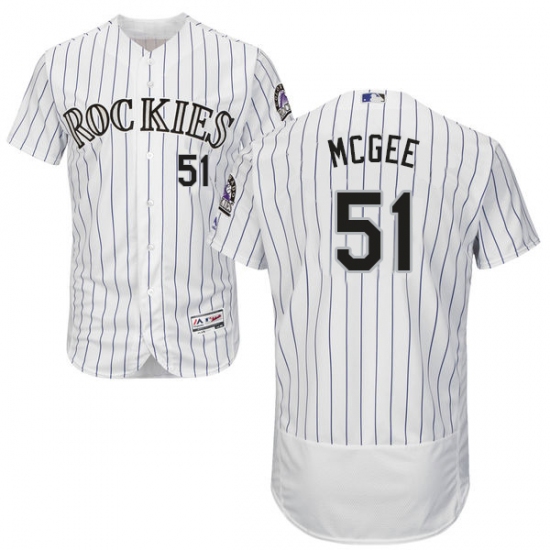 Home>MLB>Colorado Rockies>Jake McGee>Men's Majestic Colorado Rockies #51 Jake McGee White Home Flex Base Authentic Collection MLB Jersey