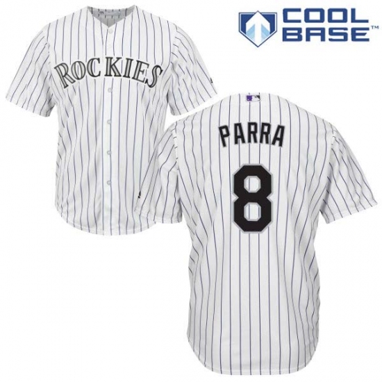 Home>MLB>Colorado Rockies>Gerardo Parra>Men's Majestic Colorado Rockies #8 Gerardo Parra Replica White Home Cool Base MLB Jersey