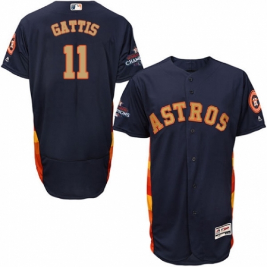 >Men's Majestic Houston Astros #11 Evan Gattis Navy Blue Alternate 2018 Gold Program Flex Base Authentic Collection MLB Jersey
