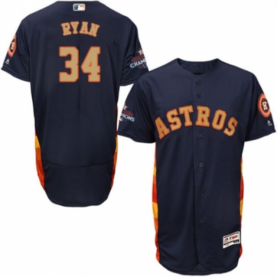 Men's Majestic Houston Astros #34 Nolan Ryan Navy Blue Alternate 2018 Gold Program Flex Base Authentic Collection MLB Jersey