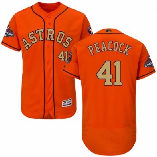 Men's Majestic Houston Astros #41 Brad Peacock Orange Alternate 2018 Gold Program Flex Base Authentic Collection MLB Jersey