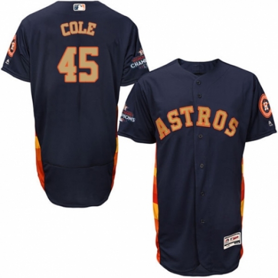 Men's Majestic Houston Astros #45 Gerrit Cole Navy Blue Alternate 2018 Gold Program Flex Base Authentic Collection MLB Jersey