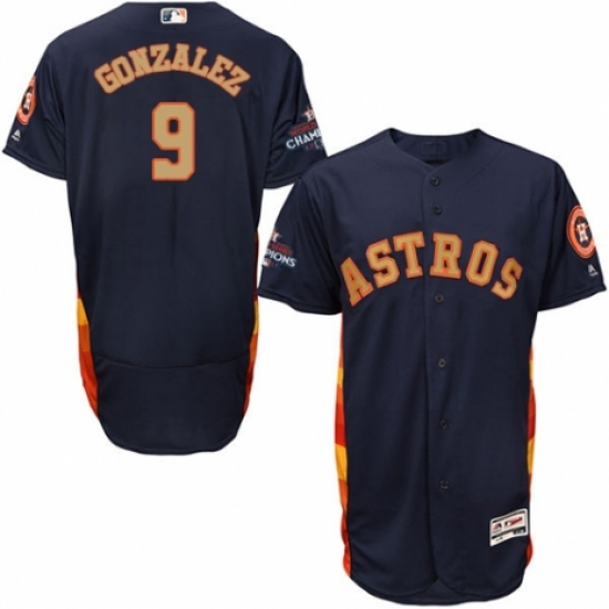 >Men's Majestic Houston Astros #9 Marwin Gonzalez Navy Blue Alternate 2018 Gold Program Flex Base Authentic Collection MLB Jersey