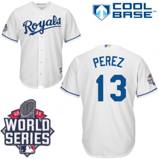 Home>MLB>Kansas City Royals>Salvador Perez>Men's Majestic Kansas City Royals #13 Salvador Perez Authentic White Home Cool Base 2015 World Series