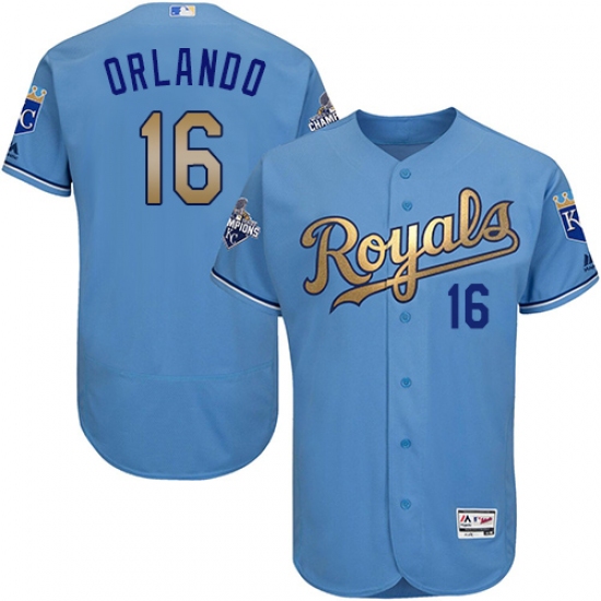 Home>MLB>Kansas City Royals>Paulo Orlando>Men's Majestic Kansas City Royals #16 Paulo Orlando Authentic Light Blue 2015 World Series Champions Gold Program FlexBase MLB Jersey