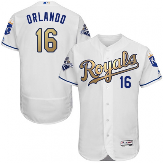 Home>MLB>Kansas City Royals>Paulo Orlando>Men's Majestic Kansas City Royals #16 Paulo Orlando Authentic White 2015 World Series Champions Gold Program FlexBase MLB Jersey
