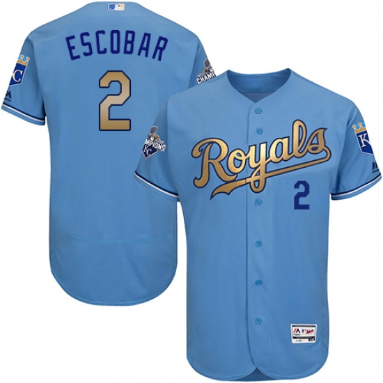 Home>MLB>Kansas City Royals>Alcides Escobar>Men's Majestic Kansas City Royals #2 Alcides Escobar Authentic Light Blue 2015 World Series Champions Gold Program FlexBase MLB Jersey