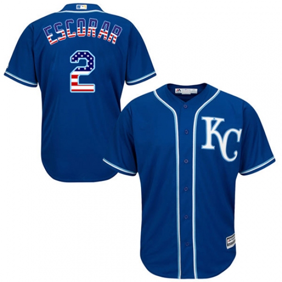 Home>MLB>Kansas City Royals>Alcides Escobar>Men's Majestic Kansas City Royals #2 Alcides Escobar Authentic Royal Blue USA Flag Fashion MLB Jersey