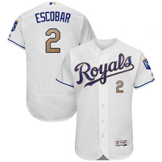 Home>MLB>Kansas City Royals>Alcides Escobar>Men's Majestic Kansas City Royals #2 Alcides Escobar White Home Flex Base Authentic MLB Jersey