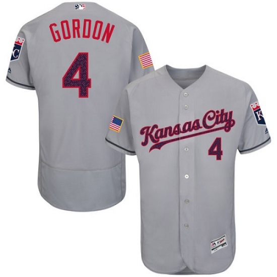 Home>MLB>Kansas City Royals>Alex Gordon>Men's Majestic Kansas City Royals #4 Alex Gordon Authentic Grey Fashion Stars & Stripes Flex Base MLB Jersey