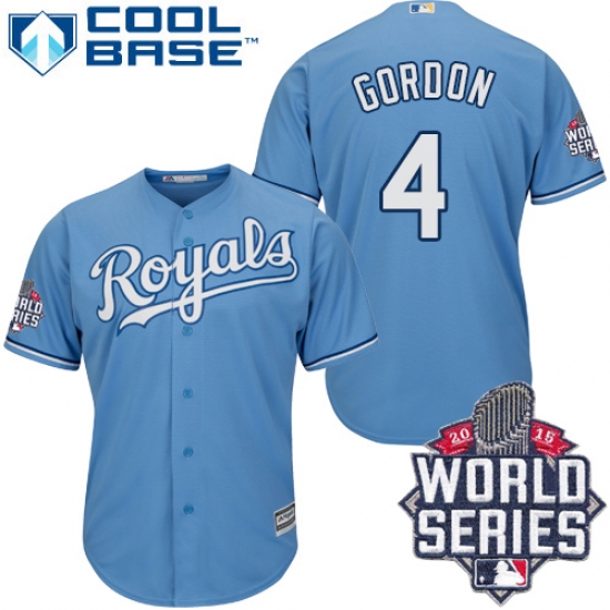 Home>MLB>Kansas City Royals>Alex Gordon>Men's Majestic Kansas City Royals #4 Alex Gordon Authentic Light Blue Alternate 1 Cool Base 2015 World Series