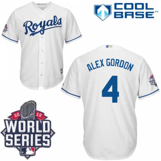 Home>MLB>Kansas City Royals>Alex Gordon>Men's Majestic Kansas City Royals #4 Alex Gordon Authentic White Home Cool Base 2015 World Series