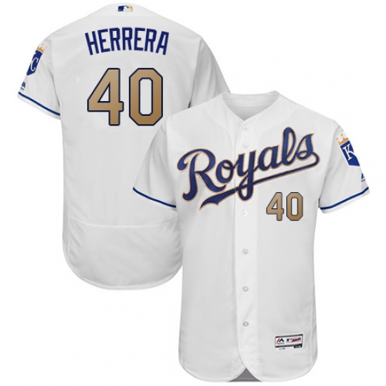 Home>MLB>Kansas City Royals>Kelvin Herrera>Men's Majestic Kansas City Royals #40 Kelvin Herrera White Home Flex Base Authentic MLB Jersey