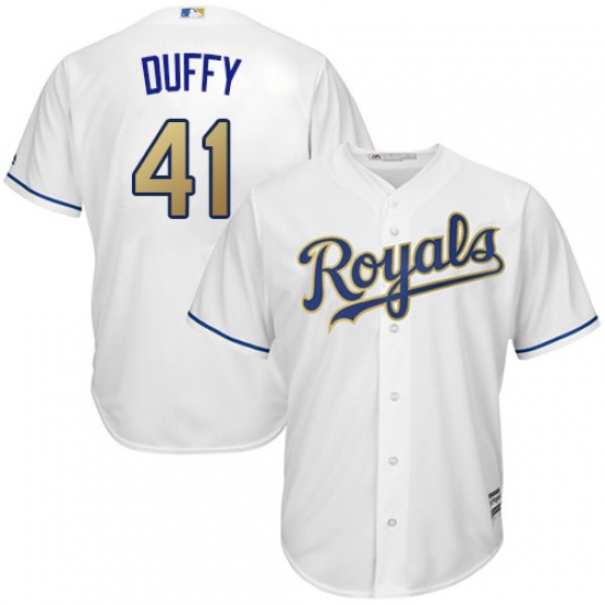 Home>MLB>Kansas City Royals>Danny Duffy>Men's Majestic Kansas City Royals #41 Danny Duffy Replica White Home Cool Base MLB Jersey