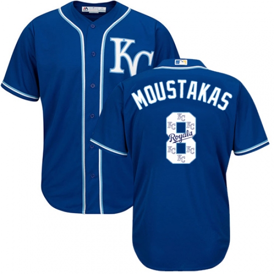 Home>MLB>Kansas City Royals>Mike Moustakas>Men's Majestic Kansas City Royals #8 Mike Moustakas Authentic Blue Team Logo Fashion Cool Base MLB Jersey