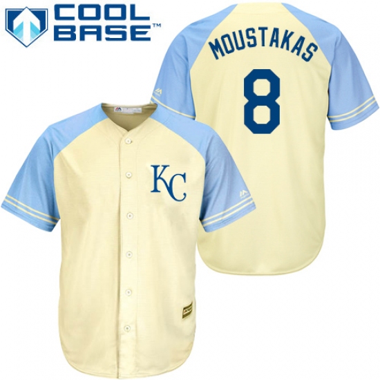 Home>MLB>Kansas City Royals>Mike Moustakas>Men's Majestic Kansas City Royals #8 Mike Moustakas Authentic Cream Exclusive Vintage Cool Base MLB Jersey