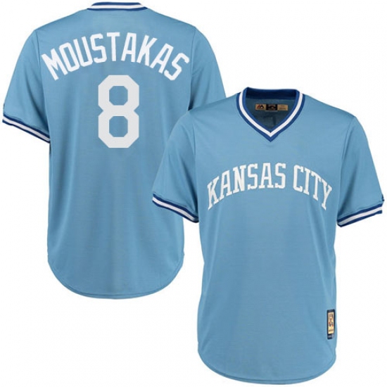 Home>MLB>Kansas City Royals>Mike Moustakas>Men's Majestic Kansas City Royals #8 Mike Moustakas Authentic Light Blue Cooperstown MLB Jersey