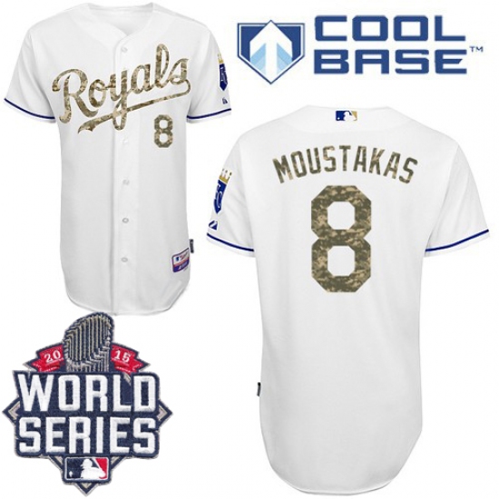 Home>MLB>Kansas City Royals>Mike Moustakas>Men's Majestic Kansas City Royals #8 Mike Moustakas Authentic White USMC Cool Base 2015 World Series