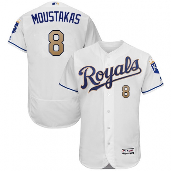 Home>MLB>Kansas City Royals>Mike Moustakas>Men's Majestic Kansas City Royals #8 Mike Moustakas White Home Flex Base Authentic MLB Jersey
