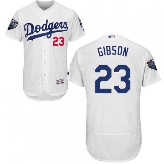 >Men's Majestic Los Angeles Dodgers #23 Kirk Gibson White Home Flex Base Authentic Collection 2018 World Series MLB Jersey