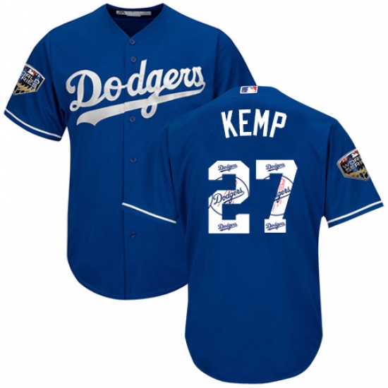 Men's Majestic Los Angeles Dodgers #27 Matt Kemp Authentic Royal Blue Team Logo Fashion Cool Base 2018 World Series MLB Jersey
