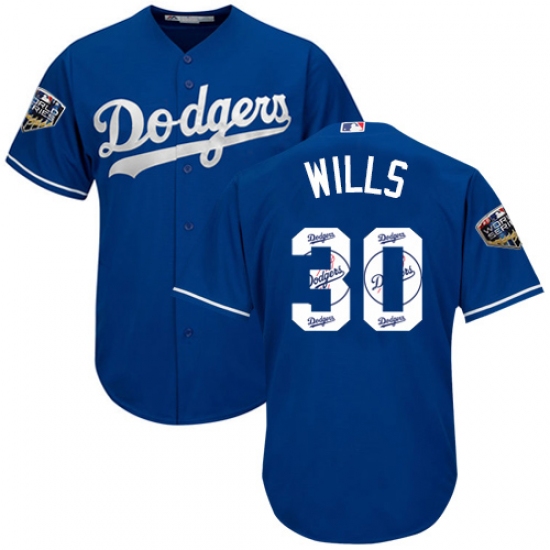 >Men's Majestic Los Angeles Dodgers #30 Maury Wills Authentic Royal Blue Team Logo Fashion Cool Base 2018 World Series MLB Jersey