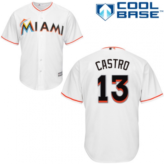 Home>MLB>Miami Marlins>Starlin Castro>Men's Majestic Miami Marlins #13 Starlin Castro Replica White Home Cool Base MLB Jersey