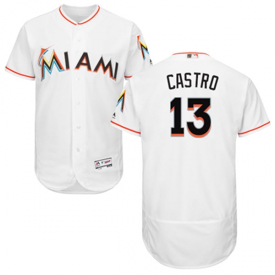Home>MLB>Miami Marlins>Starlin Castro>Men's Majestic Miami Marlins #13 Starlin Castro White Home Flex Base Authentic Collection MLB Jersey