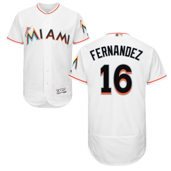 Home>MLB>Miami Marlins>Jose Fernandez>Men's Majestic Miami Marlins #16 Jose Fernandez White Home Flex Base Authentic Collection MLB Jersey