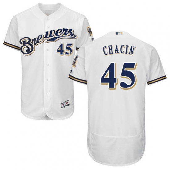 Home>MLB>Milwaukee Brewers>Jhoulys Chacin>Men's Majestic Milwaukee Brewers #45 Jhoulys Chacin White Home Flex Base Authentic Collection MLB Jersey