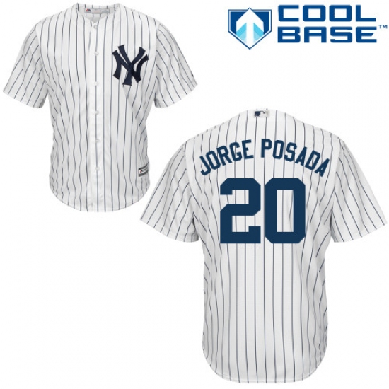 Men's Majestic New York Yankees #20 Jorge Posada Replica White Home MLB Jersey