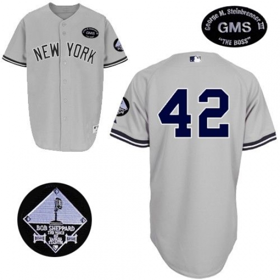 Home>MLB>New York Yankees>Mariano Rivera>Men's Majestic New York Yankees #42 Mariano Rivera Authentic Grey GMS "The Boss" MLB Jersey
