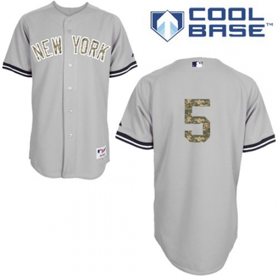 Men's Majestic New York Yankees #5 Joe DiMaggio Authentic Grey USMC Cool Base MLB Jersey