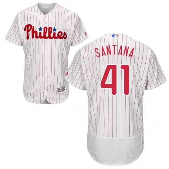 Men's Majestic Philadelphia Phillies #41 Carlos Santana White Home Flex Base Authentic Collection MLB Jersey