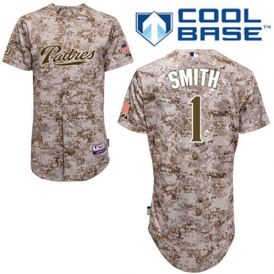 Home>MLB>San Diego Padres>Ozzie Smith>Men's Majestic San Diego Padres #1 Ozzie Smith Replica Camo Alternate 2 Cool Base MLB Jersey